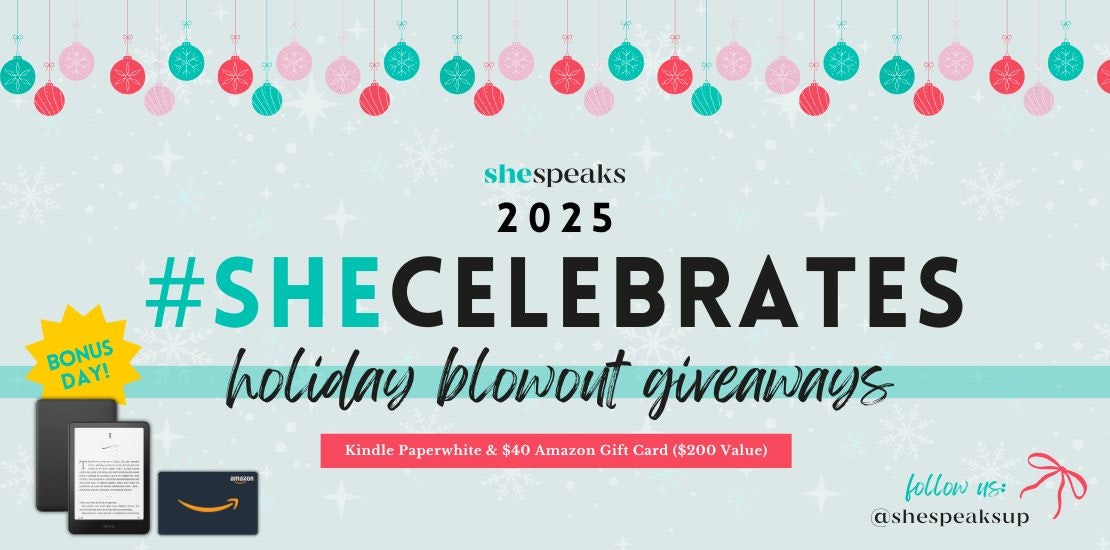 Since we’re so grateful for our SheSpeaks members and this incredible community, we’re celebrating with a Bonus Day in our #SheCelebrates Holiday Blowout Giveaways!